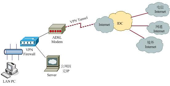 接入端采用普通的ADSL宽带接入方式,使用专用的客户账号和密码拨入我司内部网络。